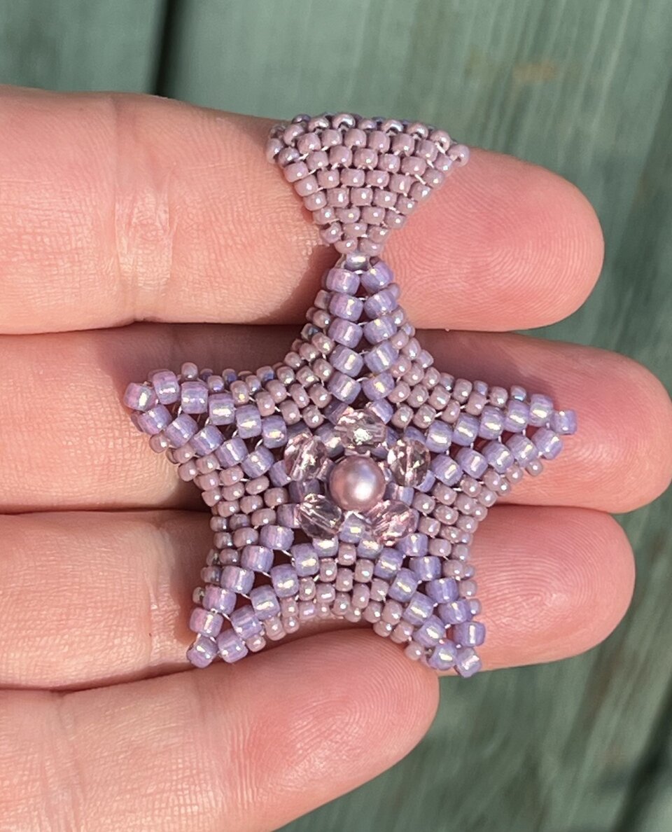 Austrian Crystal and Seed Bead Starfish Pendant – Pastel Mauve